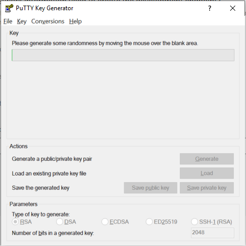 2.  Copy the Public Key that gets generated and save it for future connections. Also save the private key file.