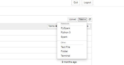 Step 9: Open a Jupyter Notebook and Click on NEW PySpark or Spark notebook