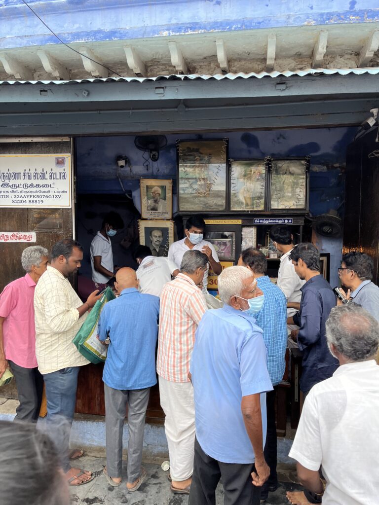 The shop opened much after the first Halwa was made in the early 1900s but quickly captured the taste buds of the locals. It has a distinct crispiness that separates it from the Halwa at Lakshmi Vilas. People are crazy in love with this shop and the 2 hours in the evening resemble a typical Tatkal scramble at the railway station.